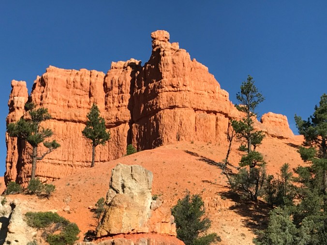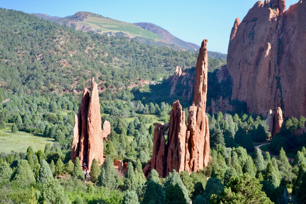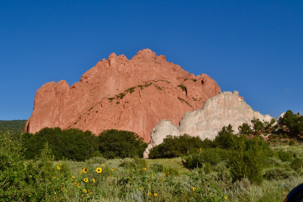 The last stop for this leg of the trip is Garden of the Gods. This was unplanned for in our itinerary. We arrived here mid to late afternoon driving through and marvelling at our surrounds. You are able to park in varying places and wander off on side trails stopping for views or to climb some rocks, We were so surprised at the ease of the walking trails and the beauty surrounding us. The park can be navigated in many ways, eg; by car, foot, segway, jeep or even horseback. Most of the pathways are paved and easy walking. There is a trading post with maps, gifts, coffee and snacks. Garden of the Gods is an area gifted to Colorado Springs by Charles Elliott Perkins and his family on the condition that the whole area be free to all visitors forever after his death. He absolutely cherished the place and his legacy was for as many people as possible to see and enjoy what he loved and treasured. Once you have seen it you will agree with his sentiments. We decided to come back the following morning to see the sun shine and highlight the true nature of the many large rock formations. Both red and white boulders jut out from the ground commanding attention. We also walked a lot further this time and Ken climbed one of the taller rock formations. What a peaceful and tranquil way to finish our stay in Colorado.