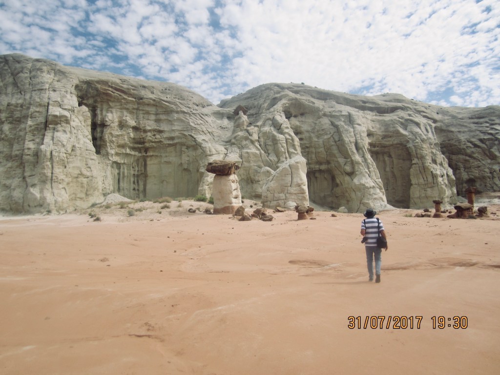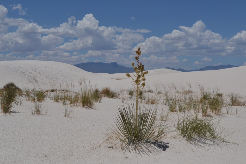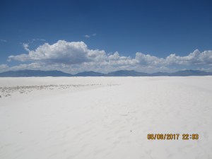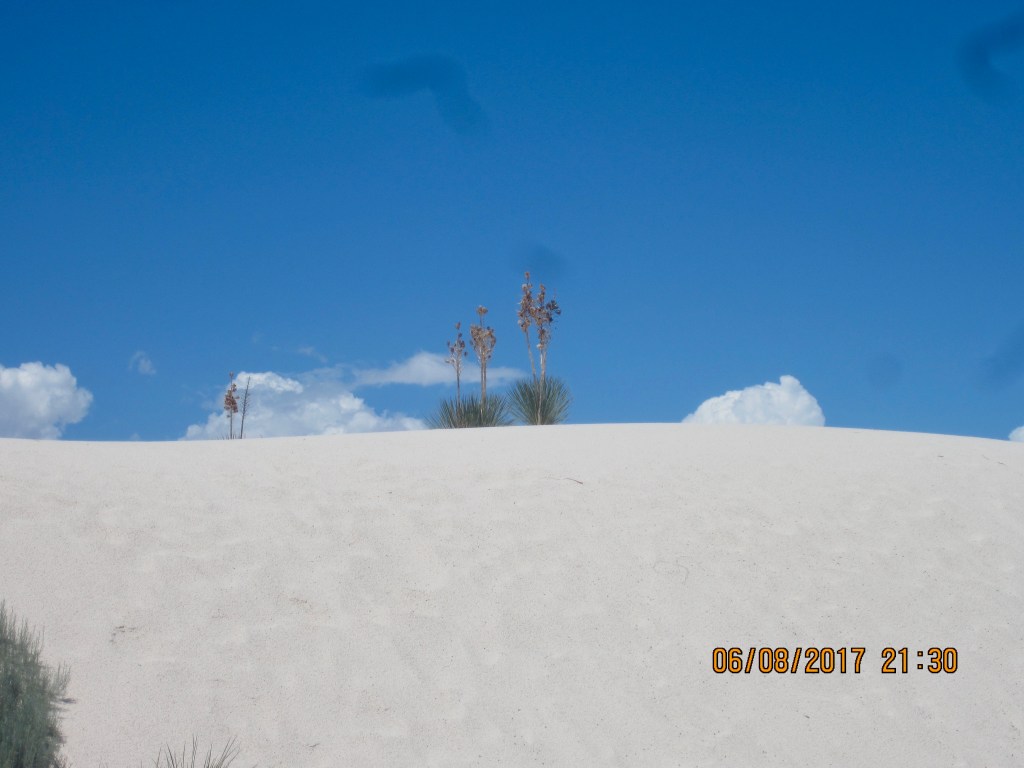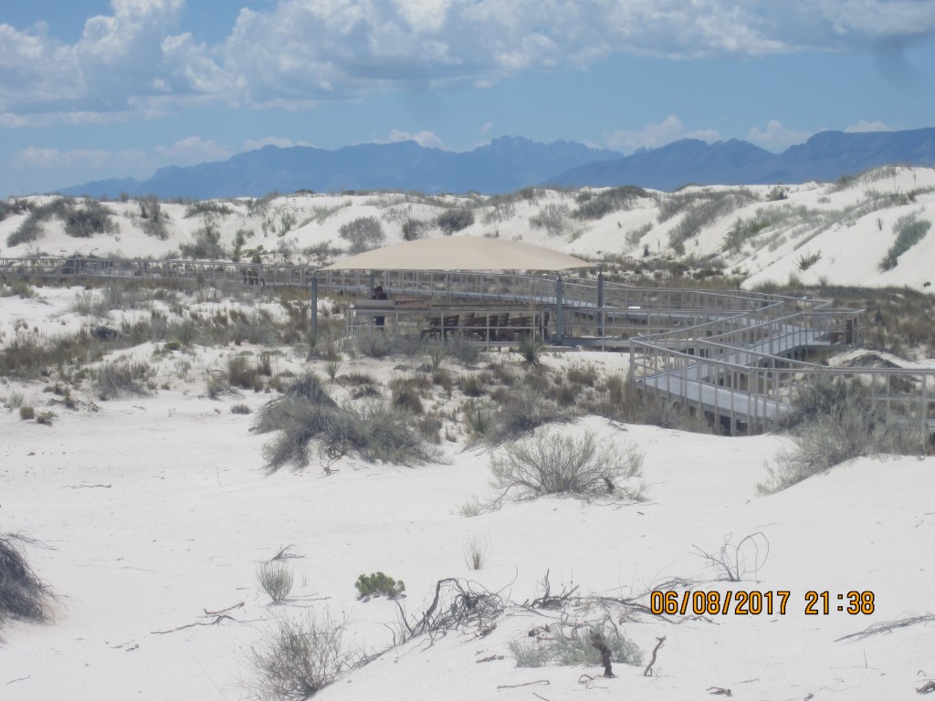Continuing onto White Sands National Park, a natural landscape of brilliant tiny particles that reflect the sun, making the crystals shine “white” to the human eye. It covers an area of 275 sq miles (590 km) and is situated in the southeastern part of the state. The wave-like mounds are made predominantly of gypsum crystals, making this the world’s largest gypsum dune field. There is an easy drive about 15 km into the centre of the area. There are some parts of the drive where you feel like you are in another world. Surrounded only by white with the occasional drop of colour spotted on humans experimenting with the landscape. Other areas present more texture and colour with small shrubs and plants protruding. You can walk up and over the dunes or ride a sled down the embankments. We ventured onto the Interdune Boardwalk which is approx 600 metres of easy walking. We were lucky enough to see a couple of lizards along the way and I have to say with no overhead coverage the walk was quite hot. As you can imagine August, even though near the end of summer in the US it is still very hot in this type of environment. In slightly cooler weather you could spend more time simply wandering around, gazing at this natural wonder.
