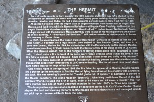 After spending the night in La Cruces New Mexico we headed to White Sands National Park. On the way we stopped off at Dripping Springs Natural Area. there is a small visitors centre where the many walks are shown on detailed maps. We were limited in time so did the smallest and closest walk. We visited a cave occupied in the 1800s by a priest with healing powers known as The Hermit. An interesting story in the plagues below.