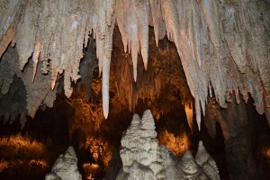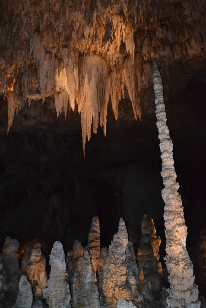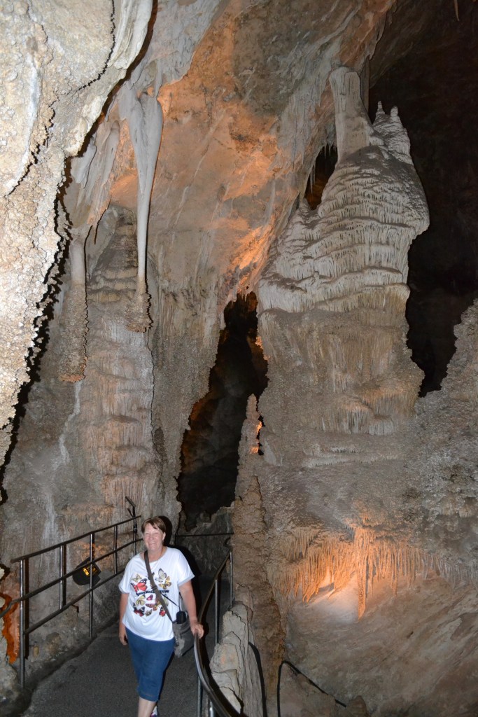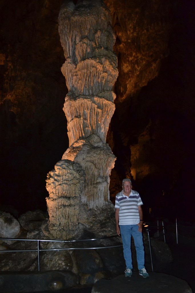 We move on now to Whites City where we stayed for a couple of days to visit Carlsbad Caverns. There are two ways of entering the monstrous limestone mountain. One was the traditional way which is to walk the natural entrance trail down into the massive main cavern. The second was to ride via a lift down 750 feet to reach the underground gift centre and then explore from there. Certainly not the same as the many stairs on offer in the Jenolan Caves system here in NSW Australia. On the first day we chose the lift as it was different. It is quite surprising alighting from the steel interior of the lift, expecting to see a dark and damp space, you are confronted with a huge open cavern with a large brightly lit gift shop with refreshments. It is just not what you expect at all. From here you can do either a quided tour or a self quided tour. As we have been in quite a few caving systems in our time we chose the self-quided. What I remember most was the size of the vast caverns and the ease to access them. The lighting was superb and walkways wound in and out showing all aspects of the limestone. Hopefully this sprinkling of photo’s will give you an idea of the size and beauty. The second day Ken decided to do the walk into the cave. Having scaled many a cave wall in Australian caves over the years this was more natural to him. A very tired but happy person returned relating the experience as being spectacular with another ridiculous amount of photo’s added to the camera.