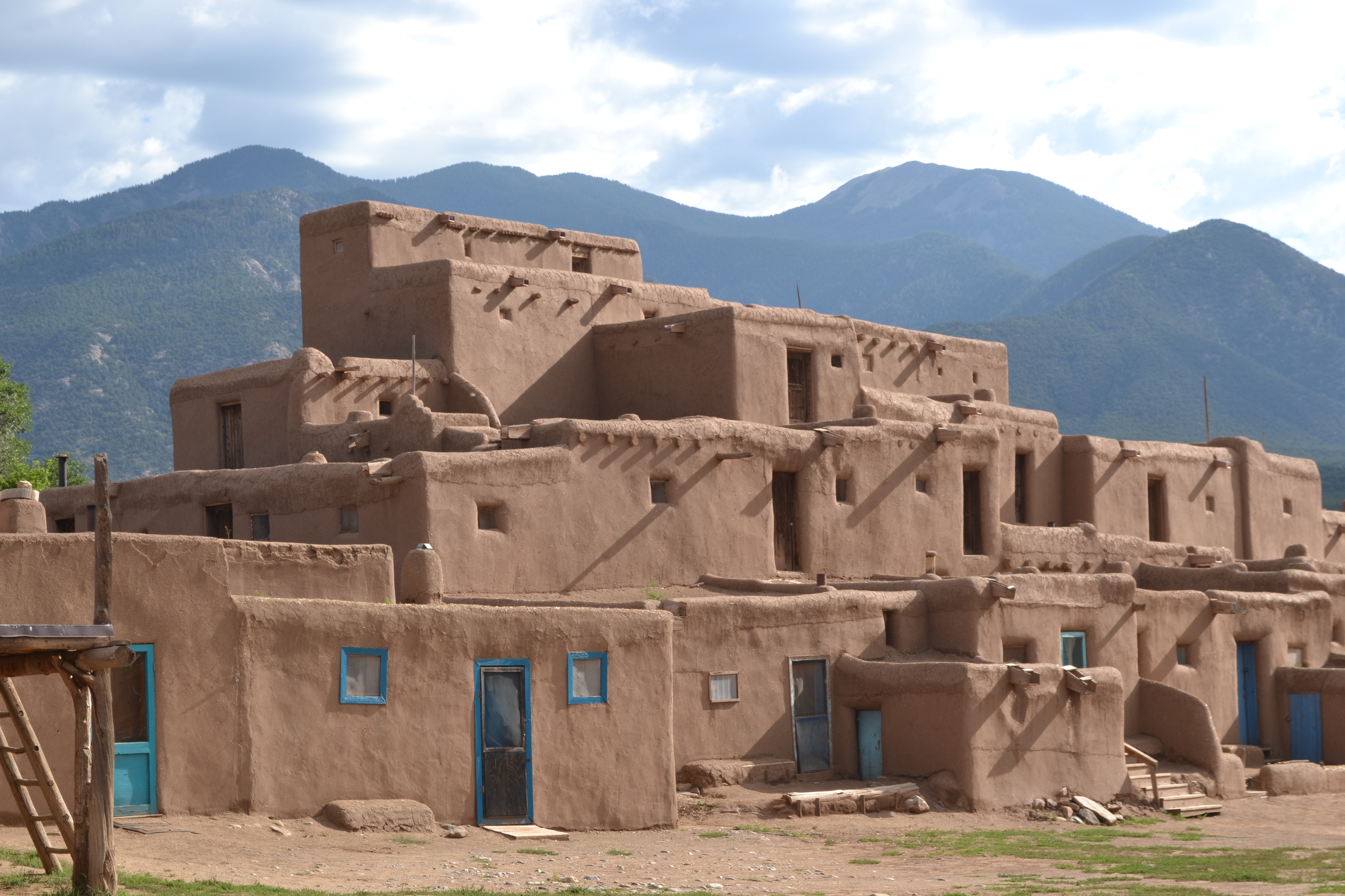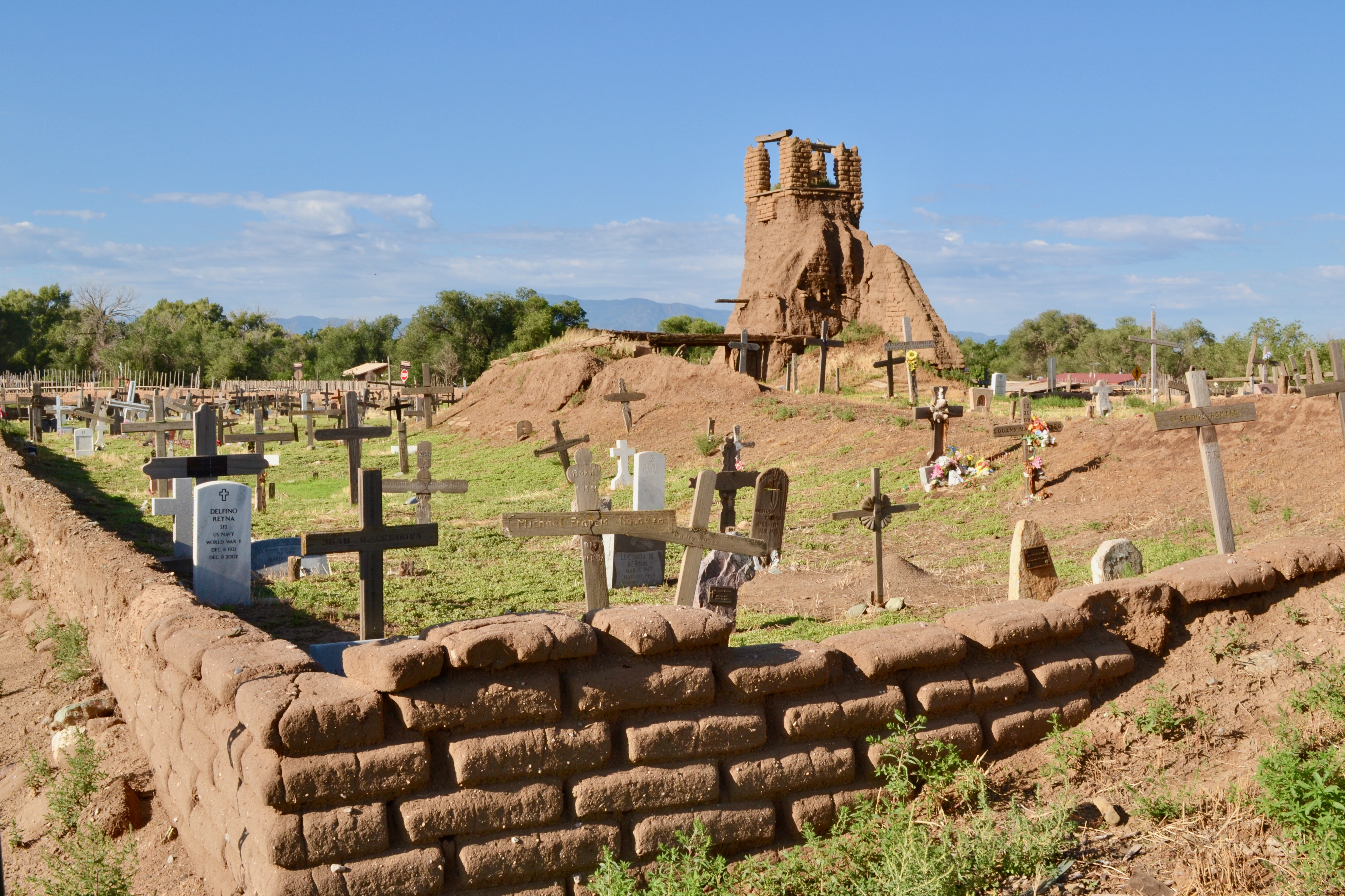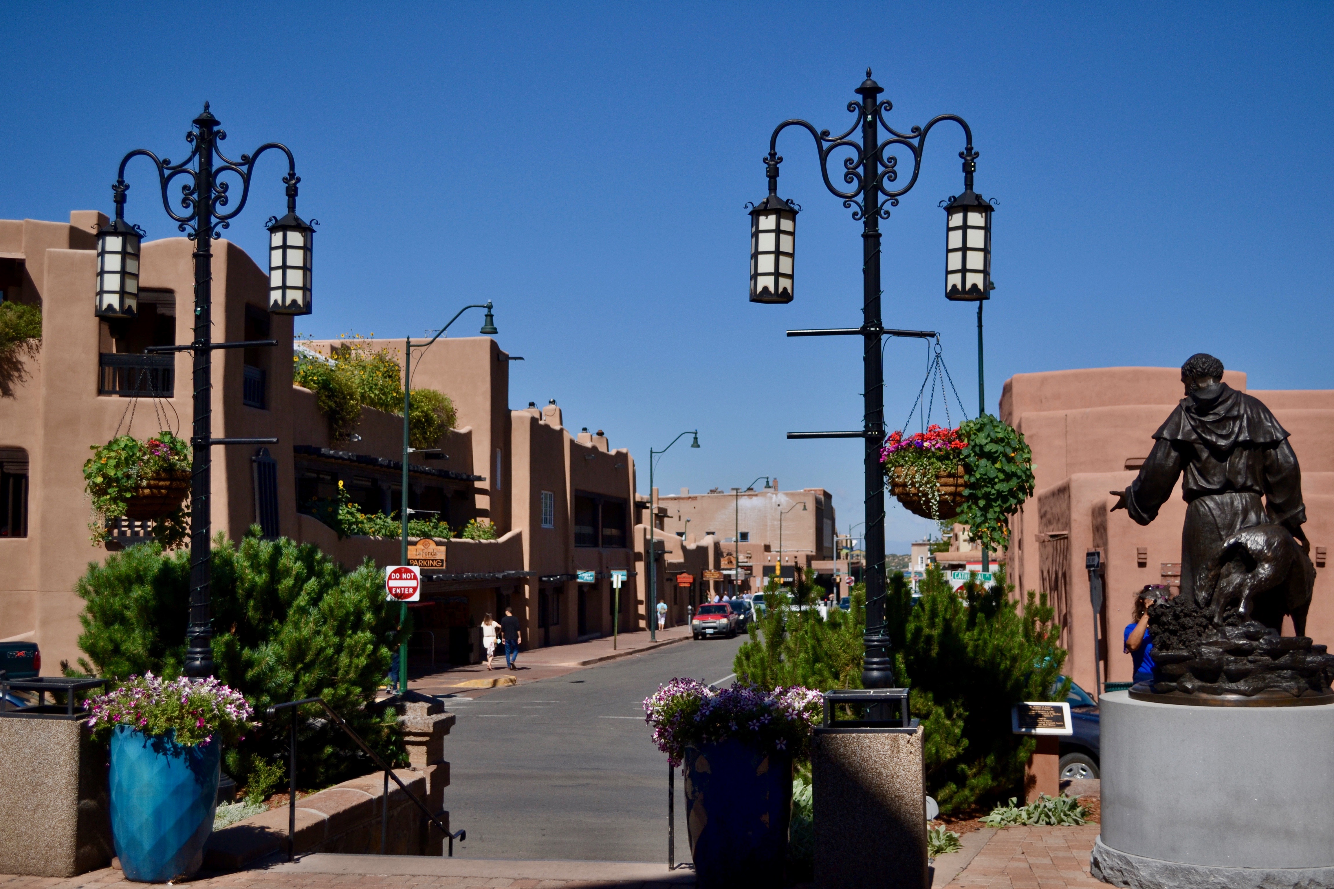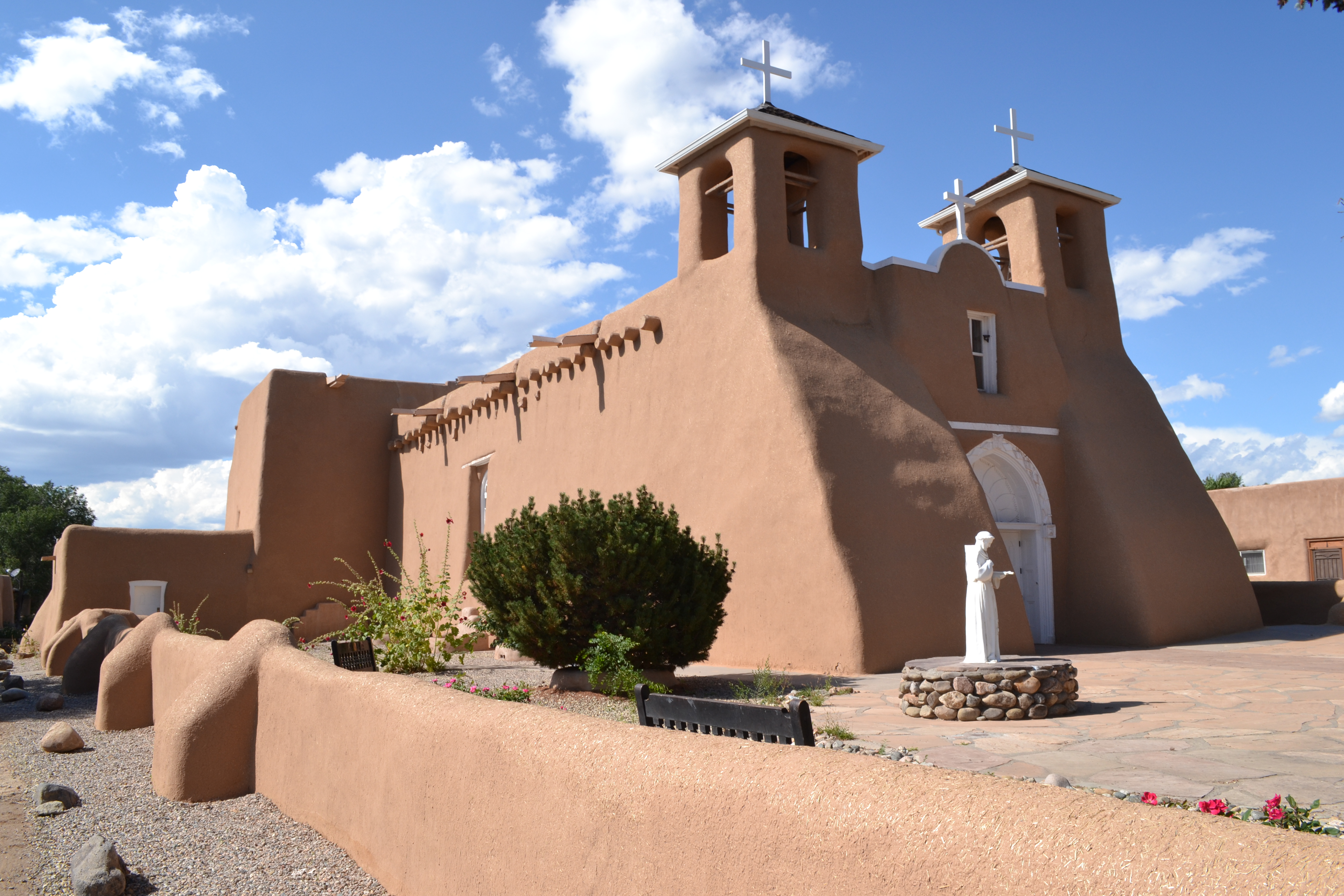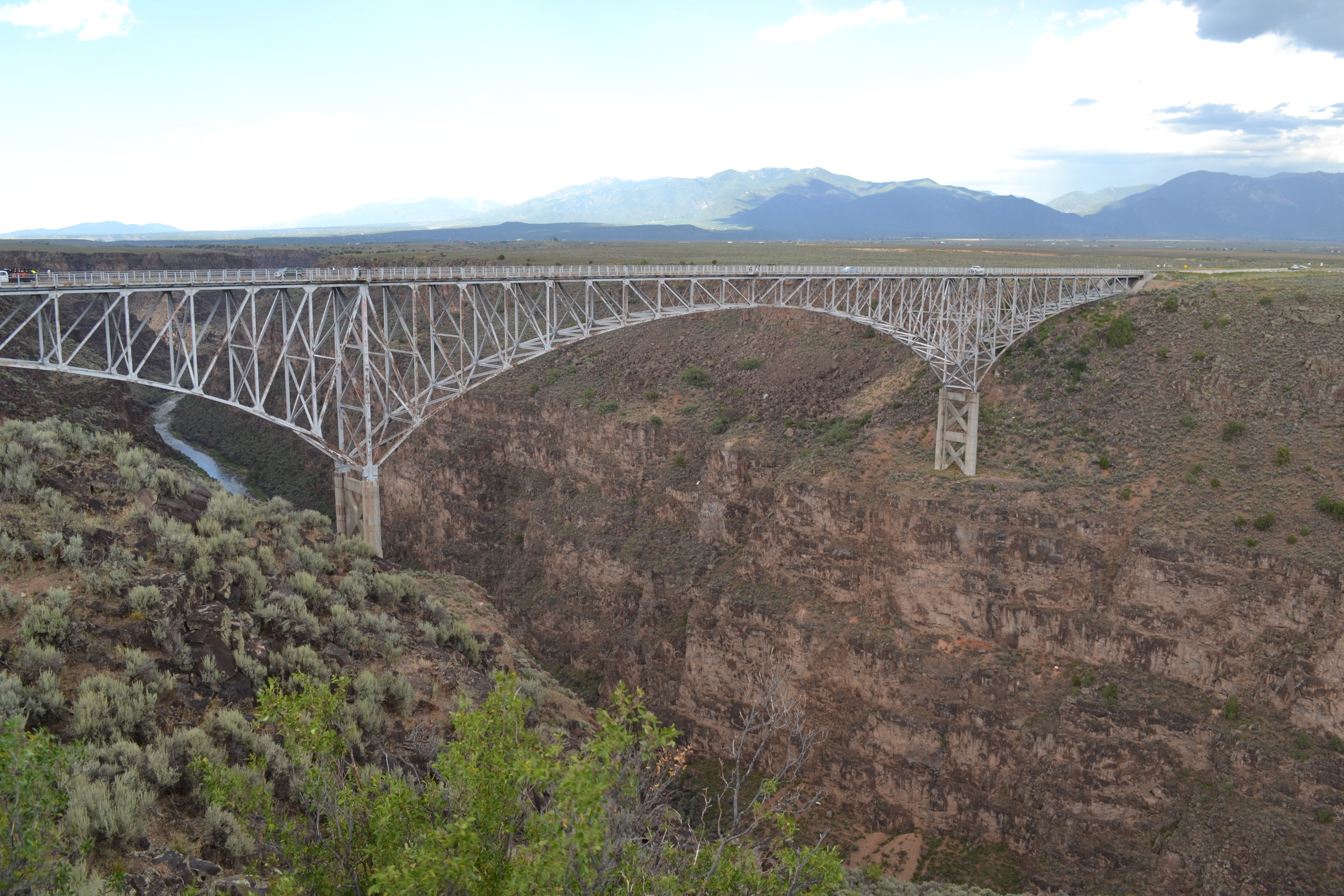 We move a little north now to Santa Fe, still in New Mexico. This town was founded as a Spanish colony in 1610. It is known for its Pueblo style architecture. The town has a main plaza dotted with many grand buildings and churches. The buildings are predominantly made from adobe (sun dried mud) with massive heavy timber doors and dark ceiling beams. There are many churches dotting the horizon in Santa Fe. I believe the main church in the plaza is the Cathedral Basilica of Saint Francis of Assisi more commonly known as St Frances Cathedral. Another very interesting piece of architecture is The Loretto Chapel, where the Miraculous Spiral Staircase can be found. The history of its origins can easily be researched on the internet along with much advertising for weddings etc. The surrounding narrow streets with all the nooks and crannies, markets, galleries and eating places are quite a treat to wander through. I found this town to be one of the prettier in New Mexico that we experienced. Not far out of Santa Fe we stopped at the Rio Grande Gorge bridge, locally known as the “High Bridge”, being a steel deck arch bridge across the Rio Grande Gorge 10 miles (16 km) northwest of Taos, New Mexico, US. The gorge depth is 800 feet (240 m) over the Rio Grande river. More importantly this is the bridge featured in the movie “Natural Born Killers” where Mickey and Mallory Knox marry. We then moved onto Taos Pueblo, a Unesco World Heritage Site. It is a living village and considered a sacred place where life continues from the earliest of human existence. There are approx. 150 people living within the Taos village. You can wander around the grounds and into the buildings. We noticed people living and working around their homes, of which many were artists selling handmade goods. We found them forthcoming with conversation and interesting people.