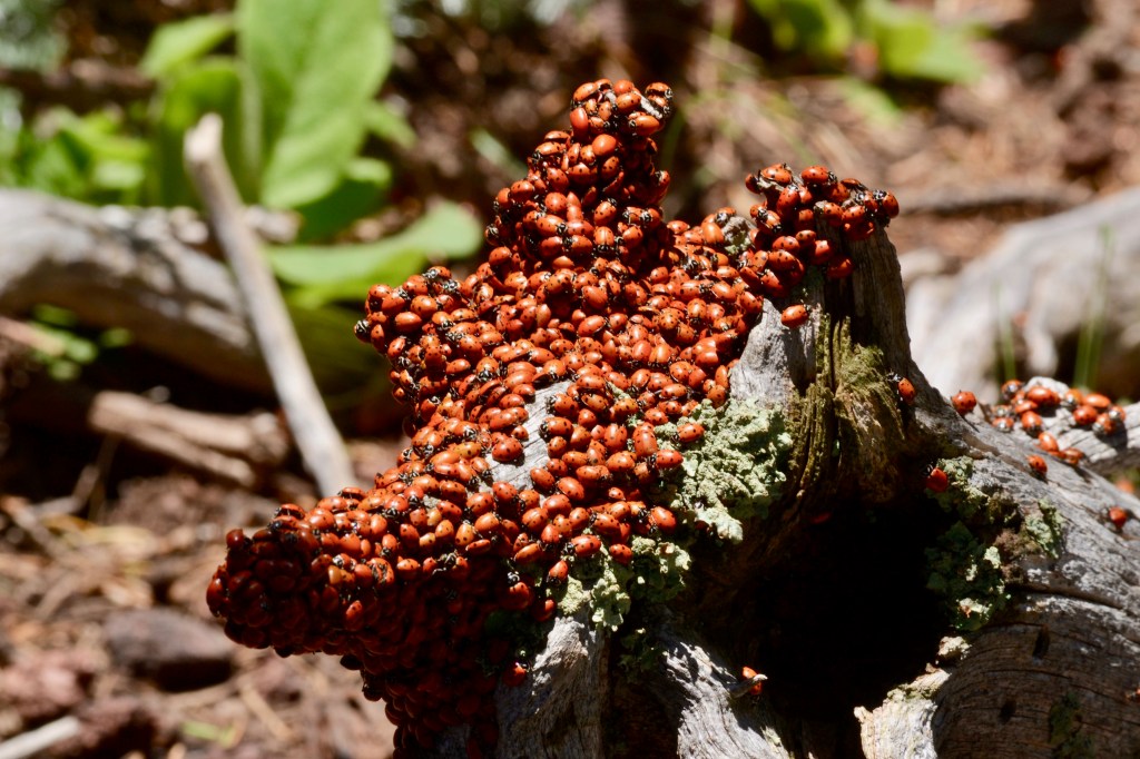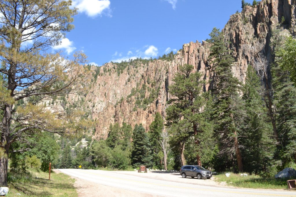 We take off early passing via the palisades sill marker. Spectacular cliffs and palisades (fine-grained porphyritic dacite sill) in the Cimarron River canyon in Northern New Mexico. It is a beautiful drive on our way to the Capulin Volcano. The volcano is a cinder cone Volcano and this one is considered a perfect example of the larger ones in USA. From the top of the volcano, four different states can be viewed. The drive up is pleasant and takes only 10-15 minutes to reach the car park. We then took one of the trails to explore more closely. The Crater Rim Trail is a steep paved one mile loop around the rim with fantastic views. The thing I remember most was the lady bugs. Thousands of bright orange and black ladybugs hugging the tree trunks and rocks as you reach higher on the volcano. To see so many in one place is quite spectacular. I believe the bugs feed all summer and then hibernate throughout the winter so we were lucky to be there just at the right time. I had no expectations about this visit and ended up enjoying my time there immensely.